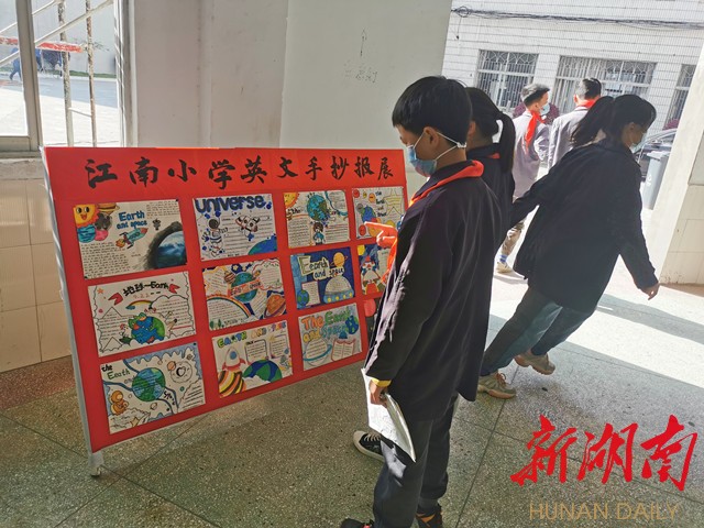 科教新报▪新湖南客户端(通讯员 梁敏)4月6日,常德市鼎城区江南小学六年级英文手抄报展在分校区举行。大课间时,同学们围在英文手抄报展板前,不时发出惊叹声:“这幅是关于地球的”“这些单词我们学过哦”……看着同学们专注的眼神、认真的模样,老师们笑着说:“看来,这比以前的作业受欢迎多了。”