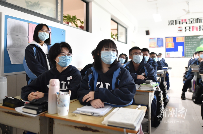 4月18日,长沙市雨花区雅礼中学,学生在教室里上课。当天,该校正式复学复课,师生重返校园,沉寂了20余天的校园热闹起来了。复学复课后,该校将实行封闭式管理,全体师生员工非必要不出校、不离长,确保师生安全有序。湖南日报全媒体记者 辜鹏博 童迪 通讯员 李如心 摄影报道