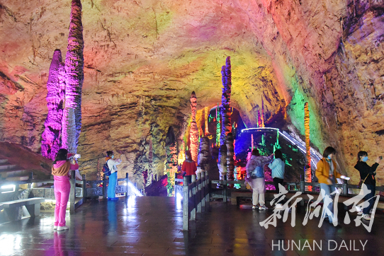 “五一”假期首日,张家界黄龙洞景区游客显著增多