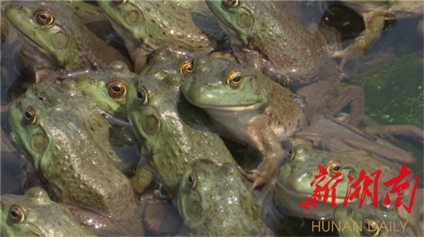 湖南日报·新湖南客户端4月13日讯(记者 杨雨澍 向辉)近日,在辰溪县安坪镇安坪村牛蛙养殖基地,只见一排排蛙池整齐排列,池内的蛙苗已经长到拇指大小,工人们正忙着给它们喂食,用不上多久,成年牛蛙就将出栏销售。