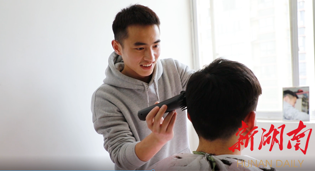 “因为在疫情期间,学校实行封闭式管理,然后有一些同学头发太久没剪,影响个人的学习生活和形象,刚好我在部队时也自学过剪发技能,退役回来之后,自己也买了剪头发工具,为自己和身边的室友服务。”怀化学院风景园林学院胡成荣同学说道。