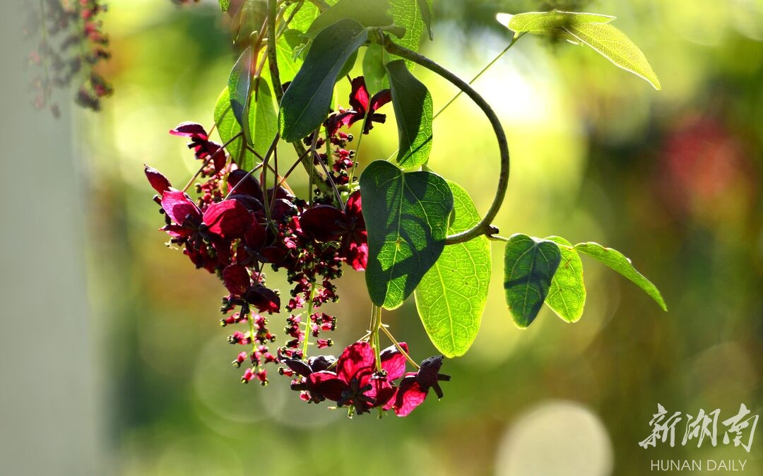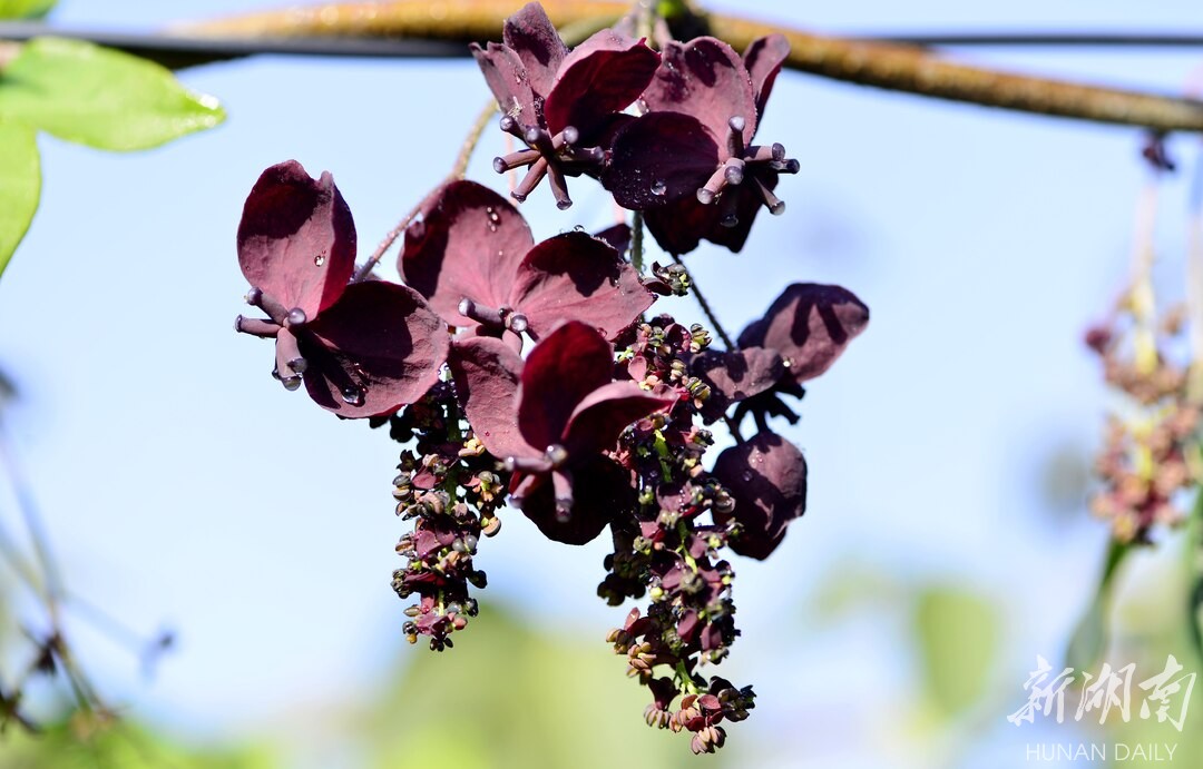 八月瓜又名牛腰果、狗腰子、八月炸、九月炸、熟庖,具有极高的观赏、食用、药用价值,是生长在湖南、云南、贵州、四川和藏东南山谷密林中的常绿木质藤本植物。4月开花,8月成熟,花数朵组成伞房花序式的总状花序,红紫、绿白色的花序芳香宜人。
