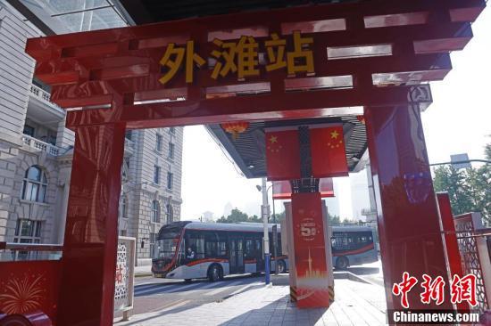 一辆公交车抵达外滩站。