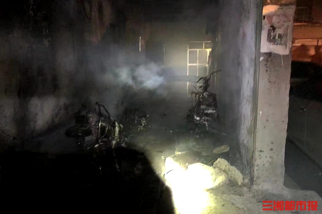 消防救援人员迅速将周围居民疏散到安全地带,经过奋力扑救,成功将大火扑灭,杂物间内电动车及其他杂物已被完全烧毁。