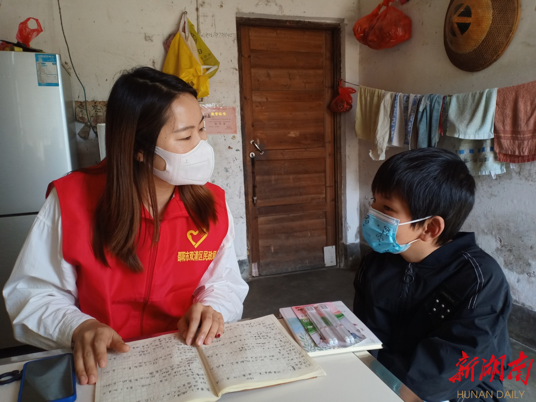 此次走访活动,不仅给困境儿童送去学业上的辅导和帮助,更重要的是给予了他们精神上的慰藉和鼓舞,让他们深切感受到了社会大家庭的温暖。下一步,双清区志愿志愿服务总队还将持续关注困境儿童的身心健康,切实做到疫情防护与关爱服务两不误,联合社会各界共同撑起爱的“保护伞”,助力困境儿童健康成长。(通讯员 王海波)