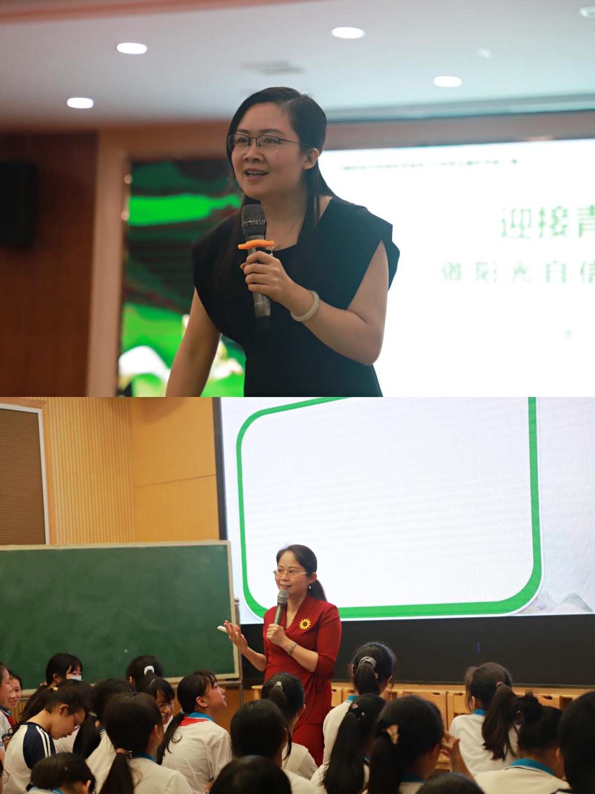 张馨元和宋坤老师从“正确认识青春期生理特点”“青春期自我保护的‘生理界线’”等方面,结合现实生活实例,进行讲解和指导,引导学生了解和发现自己青春期生理、心理变化。青春期的孩子们应当到认识自己独一无二的价值,接纳自己的不完美,从而努力成为更好的自己。