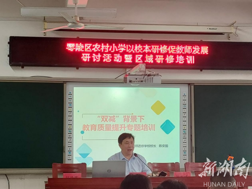 新湖南客户端5月17日讯(通讯员 周斌)为进一步推进教育教学的开展,深化校本教研,引领教师专业成长,实现区域内教育教学的交流与共享。5月13日,由零陵区教师发展中心、零陵区进修学校主办,零陵区长岭完小承办的“零陵区农村小学以校本研修促教师发展研讨活动暨区域研修培训”如期举行,零陵区教育局党组书记、局长唐天光,副局长尹艳,进修学校校长陈安国、教师发展中心主任周水洋、区教育研究电化教学中心主任何涛林等出席活动并依次讲话。