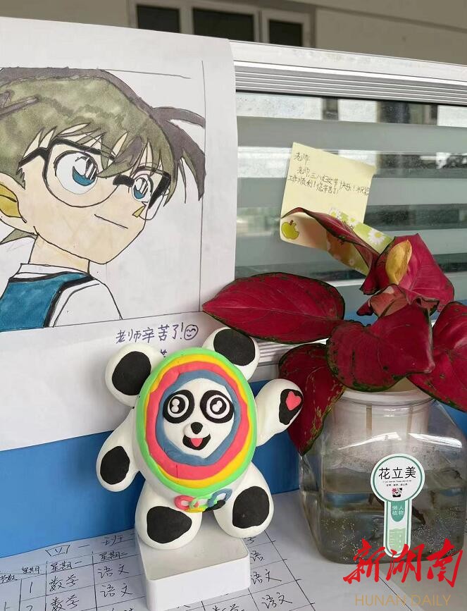 教育学家吴非曾言:“孩子是最聪明的,知道谁真的对他好。”在我源源不断给宇卓送去关爱和温暖的过程中,宇卓与我越来越亲近,也用自己的方式带给老师温情。教师节的时候,孩子们都围着老师送上祝福和精心制作的小礼物,一向腼腆的宇卓只是羞涩地站在一旁,欲言又止,没想到第二天我的办公室桌上却放着一个用陶土精心制作的冰墩墩,旁边放着贺卡,是宇卓的字迹:“老师,节日快乐,谢谢你。”我愣在原地,暖流萦绕心尖,鼻子有些酸涩。在感动的同时,我也明白,我终于迎来了这株“带刺的花蕾”的盛开。