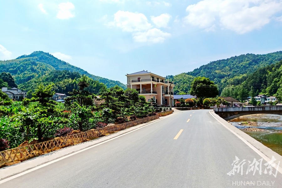 从安化县城出发,沿平洞高速向东行驶,沿途苍林翠岭逶迤细浪,明净天空中漂浮的朵朵白云,仿若是山谷岚雾出岫而来。大约40分钟后,冷市镇的村居图景便在眼前渐次铺展,柏油道路开阔整洁,行道草木茁壮蓊郁;石桥之下,溪水淙淙,金波漾漾。