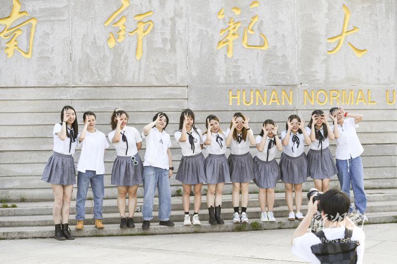 5月16日,湖南师范大学,大四学生在校园拍摄毕业照。又是一年毕业季,长沙各高校的毕业生在告别校园生活前夕,纷纷拍摄展现友情与活力的毕业照,为青春留下美好的回忆。湖南日报全媒体记者 辜鹏博 摄