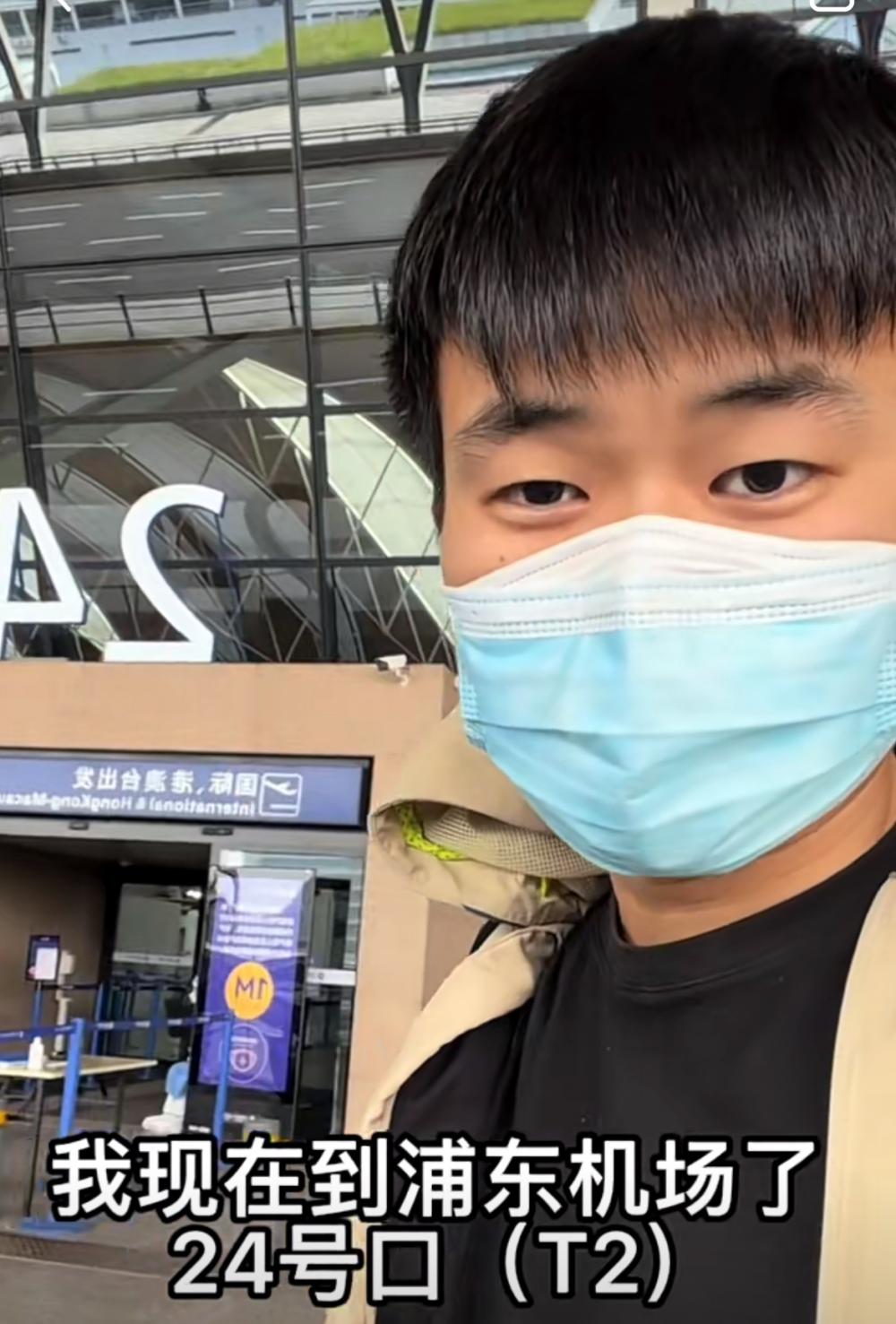 阿俊在坐机场巴士去虹桥机场的路上。 受访者供图