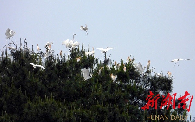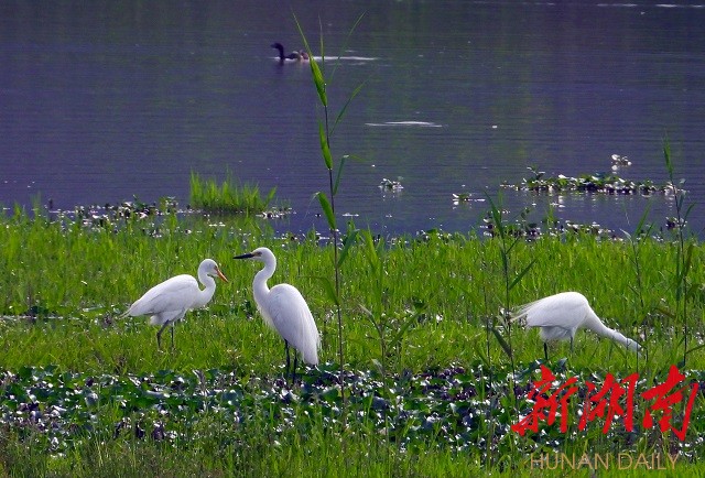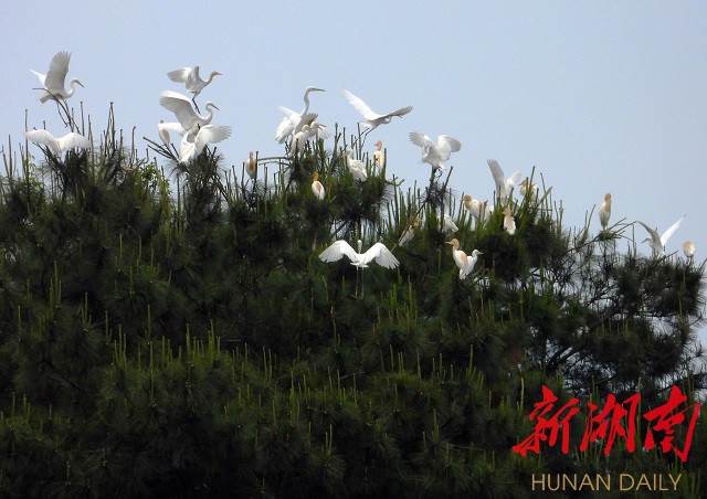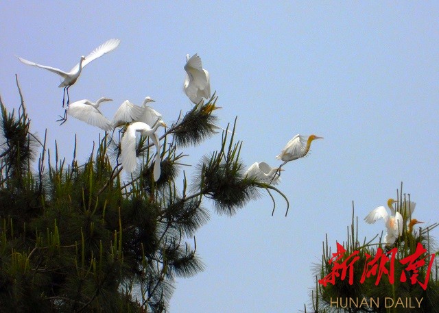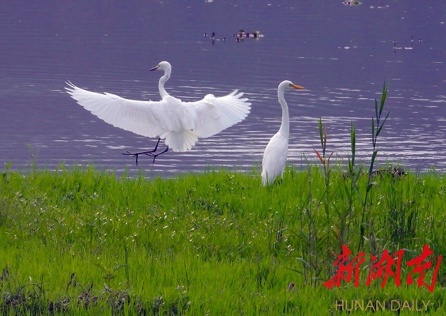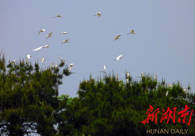 五月的新化龙湾国家湿地公园,山青青含翠,水滟滟生波,资水映蓝天一色,白鹭与落霞齐飞。广阔的河岸滩涂,芳草萋萋宛如大草原,成为众多鸟类,嬉戏、觅食的乐园。尤其一群群白鹭,或翩翩于蓝天,或觅食于浅岸,或栖息于松巅,白影飘逸,宛若仙子,上演着一幕幕“绿野仙踪”的生态剧。其情其景,美不胜收。