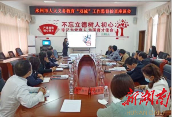 湖南日报·新湖南客户端5月16日讯(通讯员 胡磊 盘鑫 刘海)近日,永州市人大常委会组成督查组到冷水滩区部分学校与培训机构,对全市义务教育阶段“双减”工作情况进行实地督导检查,进一步推动全市义务教育“双减”工作见行见效。