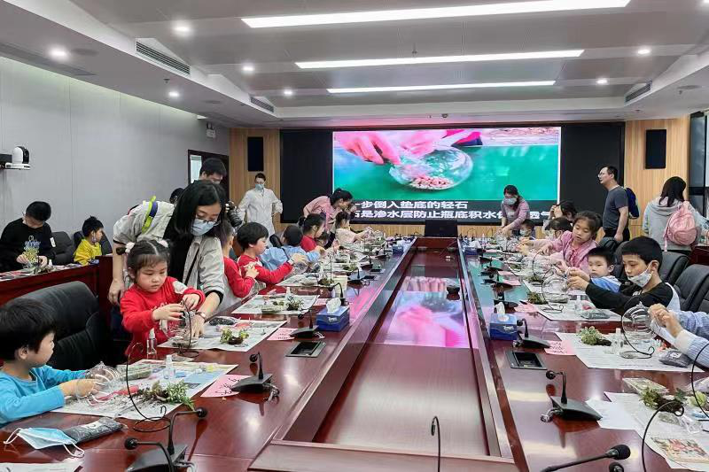 【“微景观”中的大世界】在活动现场,小朋友们还亲身体验了生物多样性DIY之“微景观盆栽”。他们在老师的指导下按步骤将绿植、多肉、砂石等物品一一植入到容器内,一起动手创造属于自己的绿色微世界。