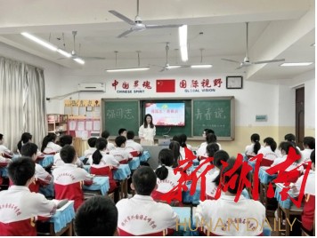 5月27日,株洲市青联委员谢俊在株洲市第七中学以自身成长道路为例,鼓励同学们踏踏实实做人,勤勤恳恳学习,珍惜宝贵的学习机会。