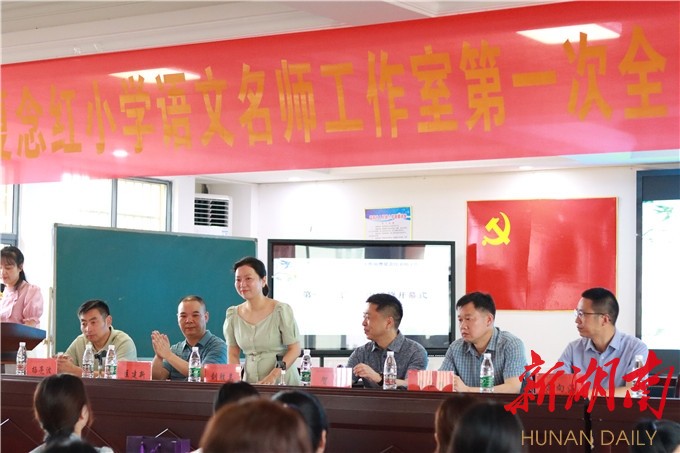 名师工作室主持人,湖南特级教师夏念红做了研修方案的解读,她指出,本次线下研修,基于工作室的研修主题:小学语文习作单元整体教学研究,既以小组为单位分享新课标的学习心得,又聚焦小学语文习作策略单元。