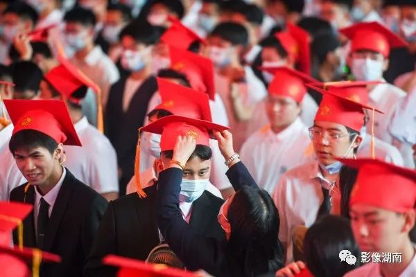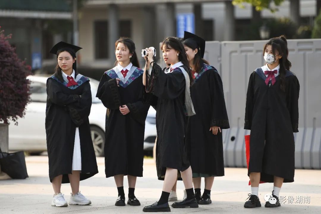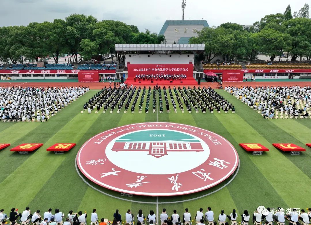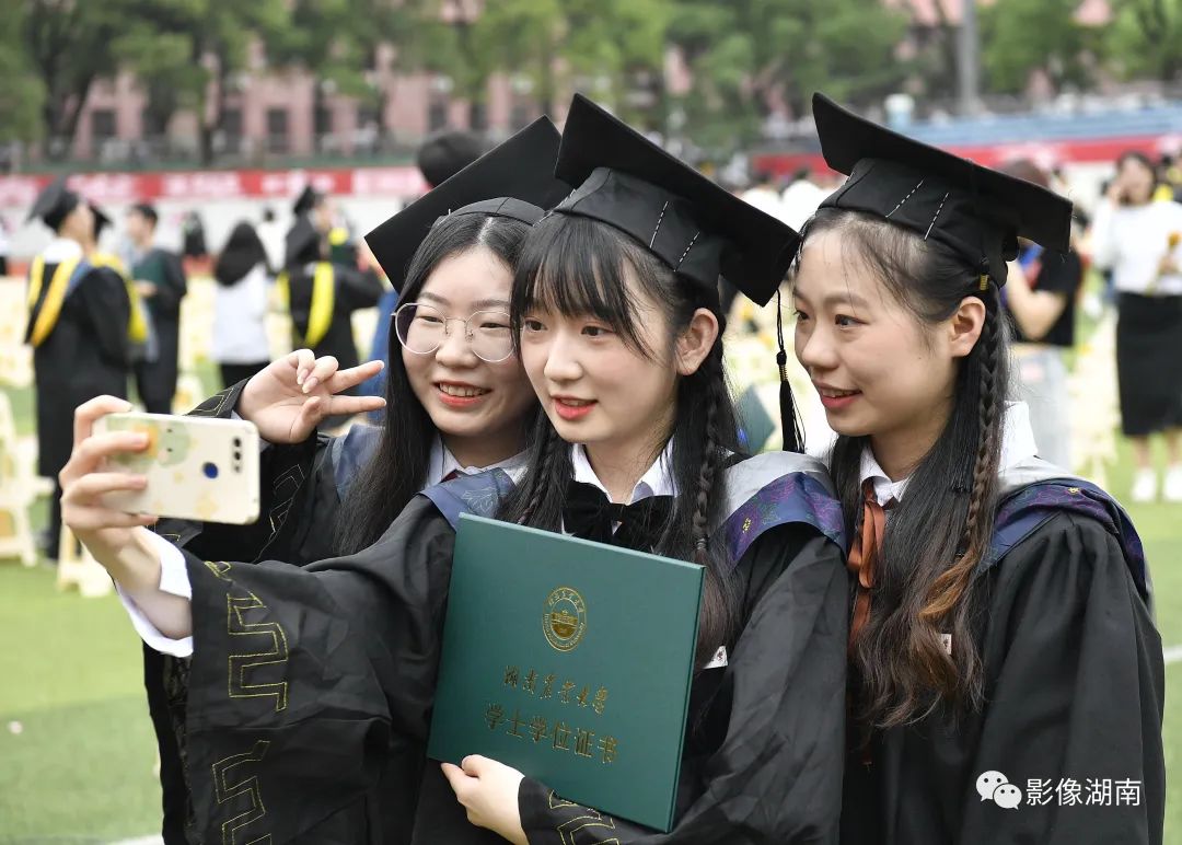 6月10日,毕业生在仪式上合影留恋。当天,湖南农业大学举行2022届本科毕业生毕业典礼,7639名学子和母校说声再见。