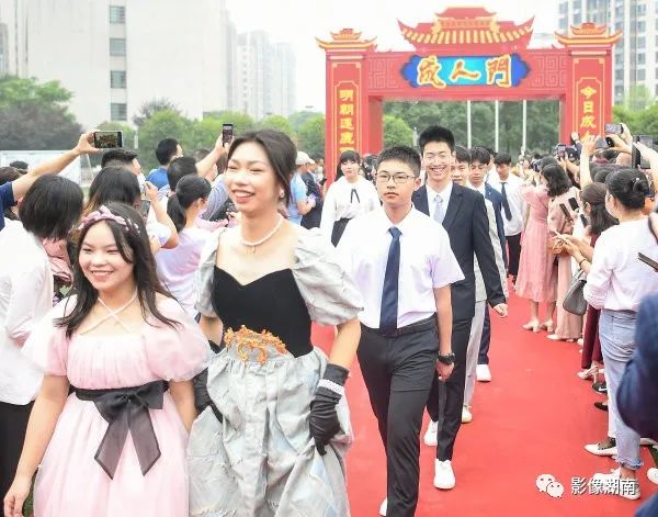 5月28日,湖南师大附中梅溪湖中学,学生开心地通过“成人门”。当天,该校为高三学生举行毕业典礼暨成人礼仪式,在家长与老师的祝福中完成成人誓言,正式步入成人行列,展望即将到来的高考与精彩人生。湖南日报全媒体记者 傅聪 摄