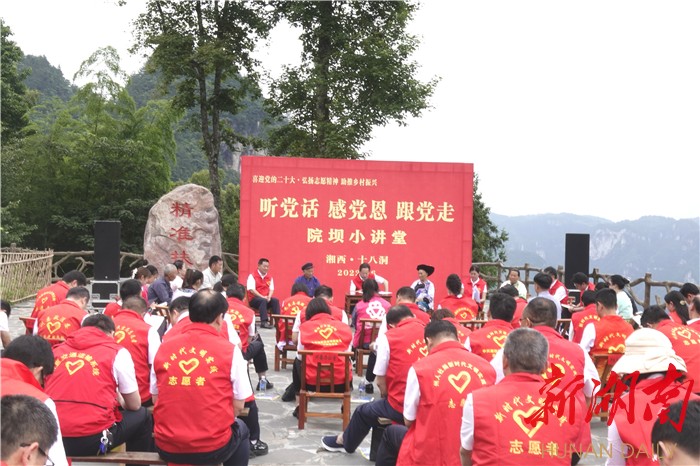 6月17日上午,湘西土家族苗族自治州弘扬志愿服务精神“院坝小讲堂”,在花垣县十八洞村开讲。湘西州委书记、州文明委主任虢正贵现场宣讲。湘西州委常委、州委宣传部部长杨彦芳主持。