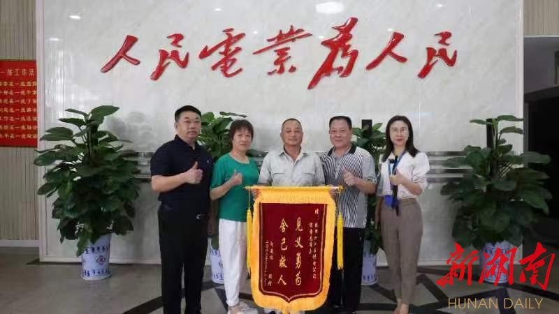 湖南日报·新湖南客户端(通讯员 杨尚知 徐跃明)6月29日,洪江区退休职工赵建林夫妇带着一面“舍己为人见义勇为”的锦旗来到国网洪江区供电公司,向该公司员工宋奇志表达感激之情。