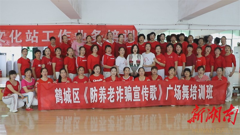 6月15日,鹤城区文化馆内,来自乡镇街道近30支民间舞蹈队的队长们集体学习编排《防养老诈骗宣传歌》广场舞。学成后,她们将回到各自社区小区,带领广大“舞友”掀起鹤城最炫“反诈风”。