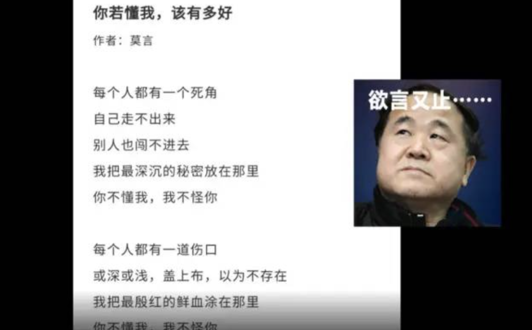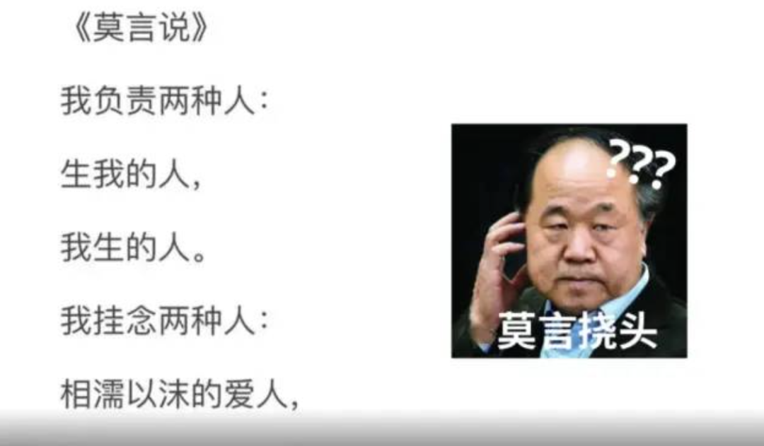 文章中,莫言还对一些谣传是其本人所写的文章和诗词金句,发布视频进行打假,还不忘配上本人表情包↓