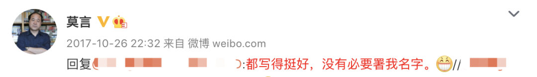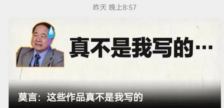 人在家中坐,作品天上来?莫言曾多次打假!对于一些冒名作品,莫言曾多次发微博澄清。——“理不糙,可我也想知道这是谁写的。”