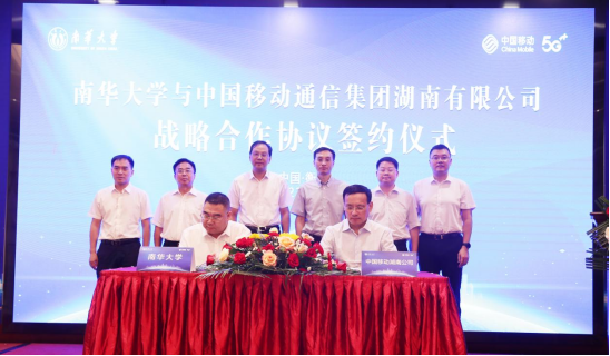 7月20日上午,南华大学与中国移动通信集团湖南有限公司战略合作协议签约仪式在衡阳市林隐酒店举行。南华大学党委书记高山,中国移动通信集团湖南有限公司党委书记、总经理程伟出席并致辞。