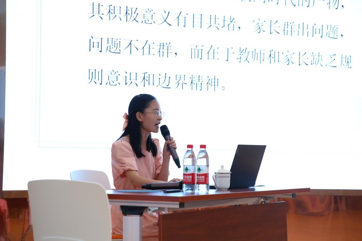 和沁园谢登丽老师在《以专业引领家长 以家长群实现家园共育》的经验交流中,从案例描述、解决方法、启示与思考三个方面体现了班主任扎实做好家园共育的探索之路。