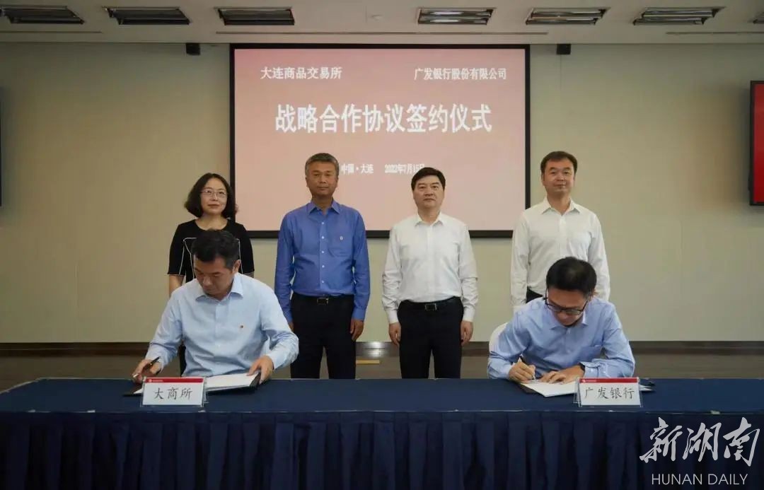 湖南日报·新湖南客户端7月16日讯(通讯员 陈佳隽)7月15日,广发银行与大连商品交易所续签战略合作协议。广发银行党委副书记、监事长罗玉冰和大连商品交易所党委副书记、总经理严绍明及党委委员、副总经理于力共同出席签约仪式,广发银行党委委员、董事会秘书李广新和大连商品交易所党委委员、副总经理程伟东代表双方签约。