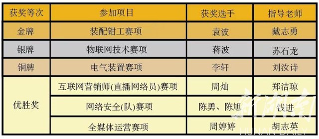 湖南日报·新湖南客户端7月8日讯(通讯员 陈瑶)7月6日,湖南省第一届职业技能大赛落下帷幕,湘潭市代表团获团体总分第三名。湘潭技师学院派出13名选手代表湘潭市参加11个赛项比赛取得优异成绩,装配钳工赛项选手袁波获得金牌,物联网技术赛项选手蒋波获得银牌,电气装置赛项选手李轩获铜牌,互联网营销师(直播网络员)赛项选手周灿、网络安全(队)赛项选手陈勇和陈旭、全媒体运营赛项选手周婷婷共3个赛项4名选手获得优胜奖,共计6个赛项7名选手获奖,是湘潭市参赛项目、获金银铜牌最多的单位。