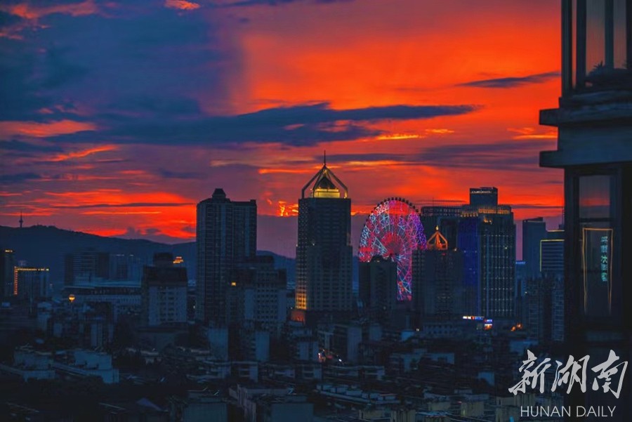 7月7日傍晚,一阵雷雨过后,长沙市天空出现绚烂晚霞,仿佛天空打翻了调色盘。市民们纷纷驻足观望,并举起手机记录下眼前美景,一时间晚霞美照刷爆了朋友圈。湖南日报全媒体记者 郭立亮 摄
