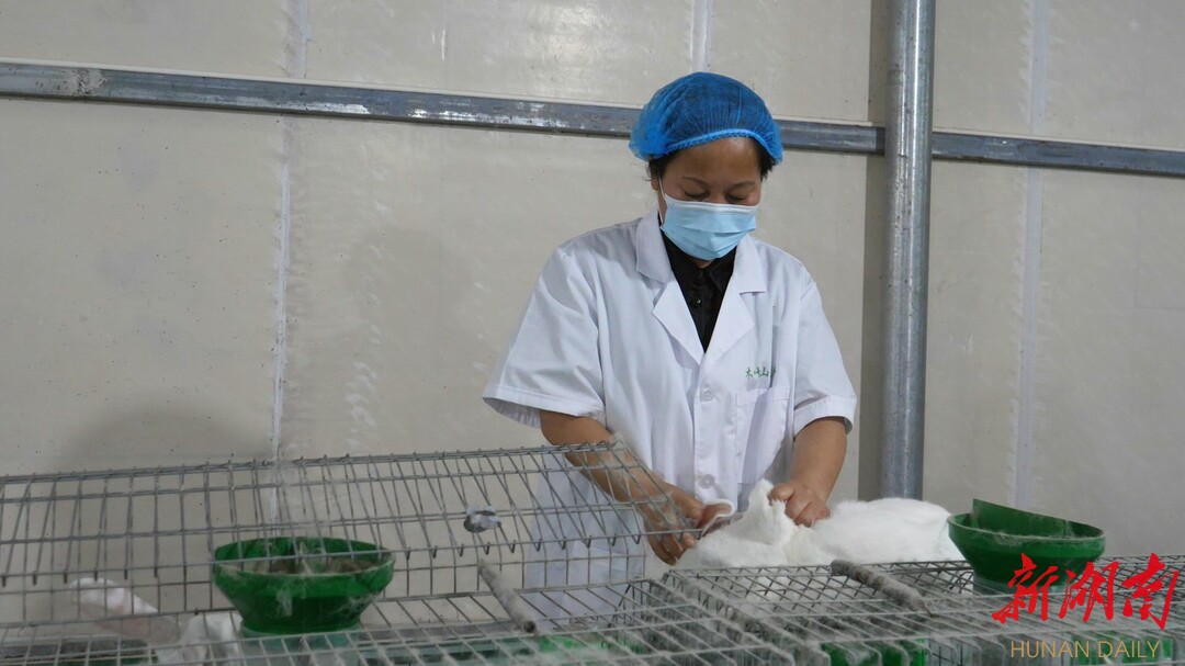 “2019年开始,公司与湖南农业大学、江苏省农业科学院等高校合作,引进最新养殖技术推广,做好兔产业发展的技术服务,公司实现统一供应优良种兔,统一供应禁抗全价饲料,统一科学管理,统一免疫程序,统一标准收购,为优质兔产品的生产加工奠定良好的基础。”胡艳云说。为实现獭兔饲养营养价值高、生长速度快、抗病能力强,产仔率高的目标,胡艳云还从兔子的适口性、成长速度及健康角度出发,在獭兔饲料加工方面申请了两个发明专利。