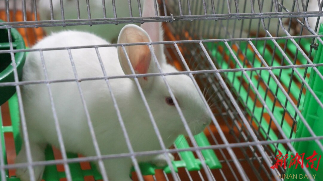 湖南日报·新湖南客户端7月11日讯(通讯员 李洁)近日,记者走进林城镇渡头村肉兔养殖基地,一排排干净、通风的兔笼中,一只只肥壮有力、憨态可掬的兔子惹人怜爱。基地负责人胡艳云一边查看兔子长势,一边投喂饲料,看着笼内活蹦乱跳的兔子,胡艳云不禁喜笑颜开。
