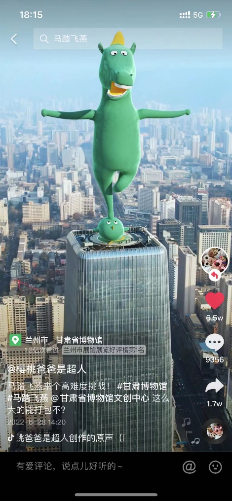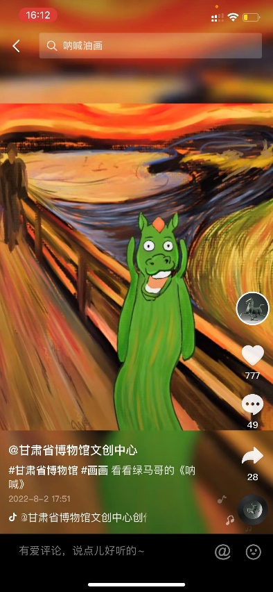 “绿马”哥的《呐喊》甘肃省博物馆文创中心抖音官号截图