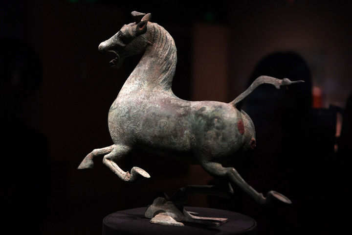 “铜奔马”出土于甘肃省武威市雷台汉墓,距今已有2000多年的历史。它是中国旅游标志物,也是古丝绸之路最具代表性的历史文物载体。多年来,铜奔马吸引着众多海内外游客打卡甘博。
