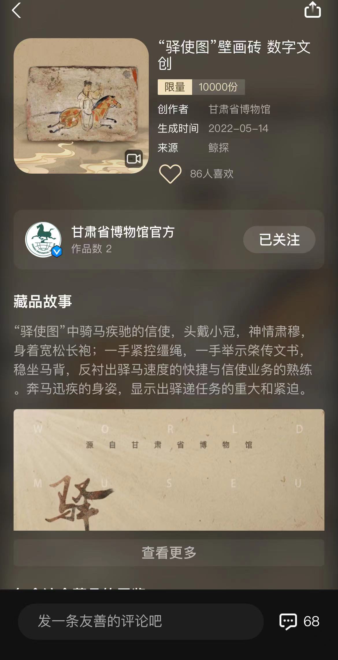 “驿使图”壁画砖数字藏品 鲸探APP截图