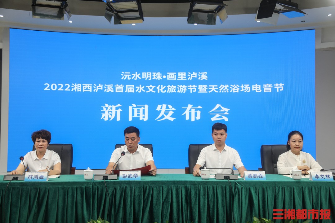 三湘都市报·新湖南客户端8月12日讯(全媒体记者 潘显璇 实习生 唐清清 摄影 刘丰)今天,2022湘西泸溪首届水文化旅游节暨天然浴场电音节新闻发布会在长沙召开,宣布水文化旅游节将于8月20日至22日在泸溪县沅水画壁景区举行。