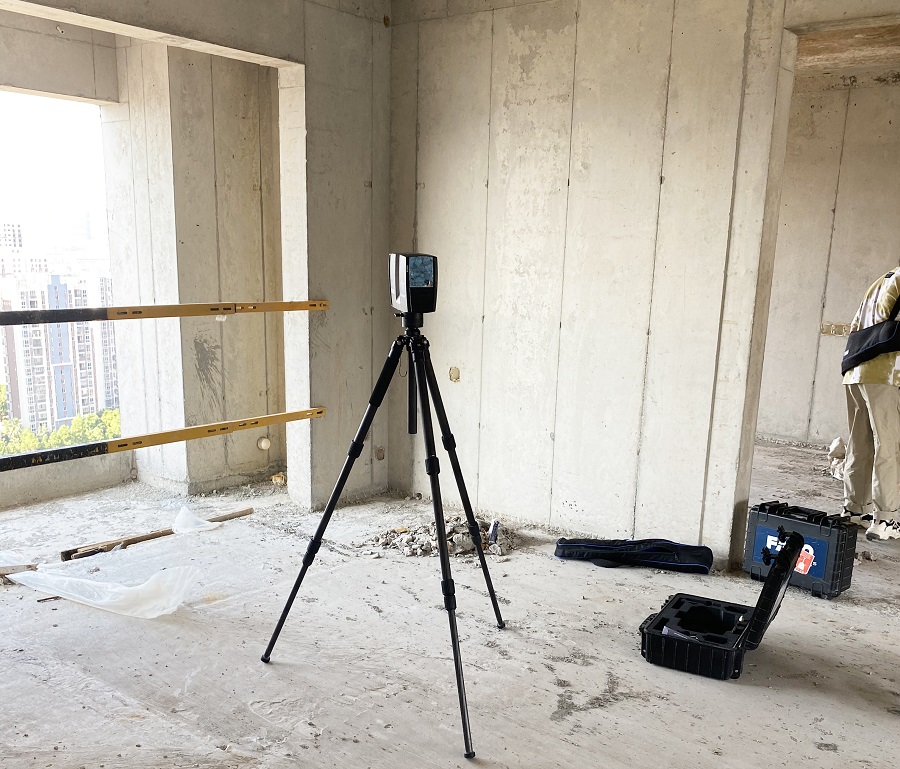 该机器人可单人操作,能一次性完成一套房墙面垂直度、平整度、方正度、顶板水平度、开间进深净高等多种指标测量,平均每天可完成50套房以上的实测任务;而采用手工测量每小组需2-3名测量员,一套房只能抽测10个测点,普遍存在测量盲区,垂平度、方正度、顶板水平度等指标需要分开测量,因此全面测量一套房需60分钟左右,极大限制了现场施工人员合理安排生产时间的能力。