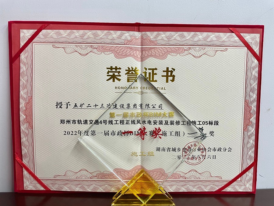 近日,在湖南省城乡建设行业协会组织举办的2022年度第一届市政杯BIM大赛上,五矿二十三冶四公司的参赛作品《郑州市轨道交通4号线工程正线风水电安装及装修工程施工05标段》荣获(施工组)一等奖、五矿二十三冶总承包公司的《青海省西海(海晏)至察汗诺公路工程XC-2标段察汗诺互通转体桥项目》荣获(施工组)二等奖。