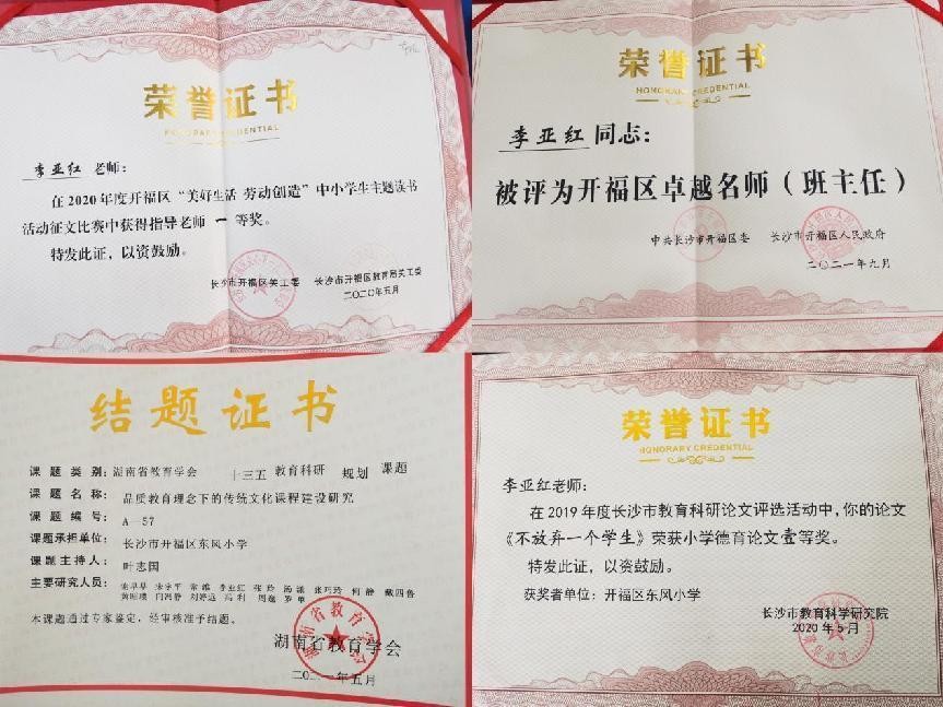 常言道“茶亦醉人何必酒,书能香我不需花。”为了使读书达到更好的效果,我还写了读书笔记、读后感、论文、教学札记、教学反思等等,许多论文获奖或者发表。积极参与学校各项课题,并且在各种活动中进行经验交流。胸藏文墨虚若谷,腹有诗书气自华。以书为友,以读增智。在阅读中,边读边留下思考的足迹。落笔之处皆风景,记录下自己所思、所感,书写的是触动心灵的语句。特别是看到自己的论文变成了铅字,感受更深刻!看到学生的作品获奖或者发表,更引以为豪!