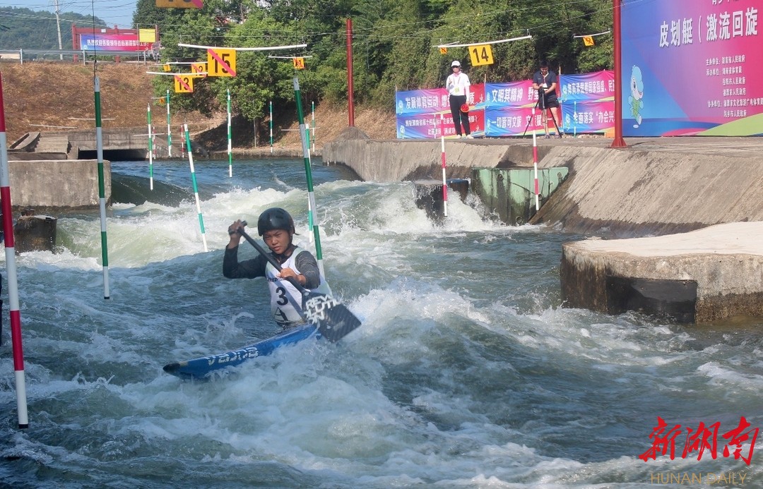 湖南省第十四届运动会皮划艇激流回旋项目于湘潭市湘乡比赛三天。面对摩拳擦掌,跃跃欲试的各路选手,刘星雨咬紧牙关,每桨必搏。在每每穿越汹涌波涛、激流险阻的时候,她以娴熟的技巧一路斩关夺隘,这充分展示了她顽强拼搏的实力,展示了她敢与大自然搏斗的坚强毅力和敢于战胜复杂多变恶劣环境的坚定信心。