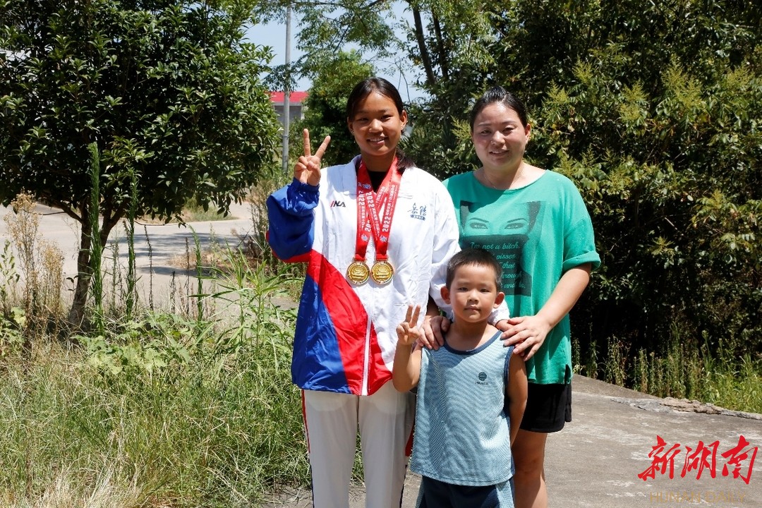 “省运会,岳阳县运动员刘星雨斩获2枚金牌”的消息一出,柏祥镇山水欢笑,百姓欢腾。左右乡邻纷纷涌向她家祝贺!镇党政领导也送来了鲜花。
