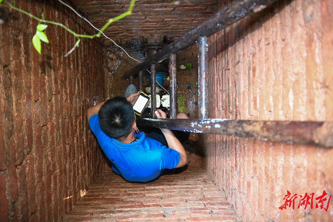 8月8日,长沙市岳麓区岳北和苑小区,长沙供水有限公司城西分公司工作人员在2米多深的水表井抄表。湖南日报·新湖南客户端记者王文 傅聪 摄影报道