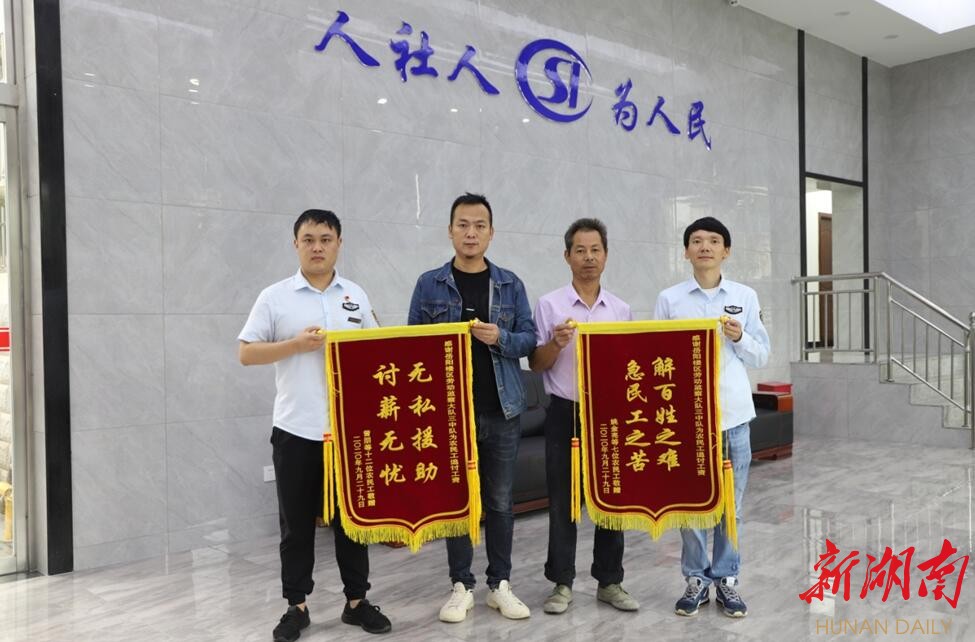 (岳阳楼区人社局监察大队保障农民工工资获赠锦旗)