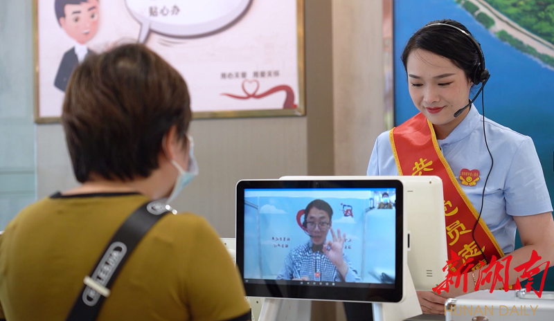 在岳阳市政务服务中心,大厅配备手语智慧一体机,特聘手语老师,为听障人士提供在线手语翻译服务;编制易看易知易懂的办事服务手册,完善无障碍通道、卫生间、停车位、电梯及母婴室、爱心角等设施,配备轮椅、老花镜、放大镜、老人行走椅、婴儿车、饮水机、雨伞等便民物品,办事过程中全方位提供便利;完善服务应急预案,配备医药应急箱、AED自动体外除颤仪等急救设备;加大服务保障,安排“爱心专车”,为上门、送证提供服务。