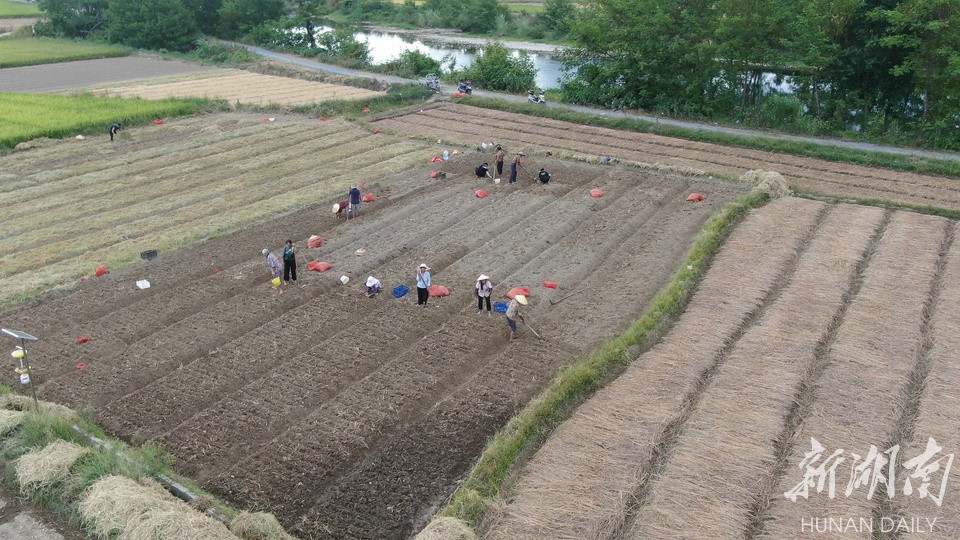 眼下,道县的早稻已全部收割归仓,车边社区的早藠头正式进入栽种时节,千亩藠头种植基地里,村民们挥锄起垄、修沟、放种、填土、施肥、覆草,田间地头呈现出一派繁忙的劳作景象。