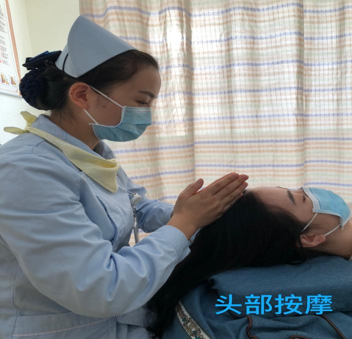 通过手法按摩上星、印堂、头维、攒竹、丝竹空、百会、太阳、风池、肩井等穴位,使头部经脉气血得以顺畅,阴阳得以平衡,从而达到解除失眠。