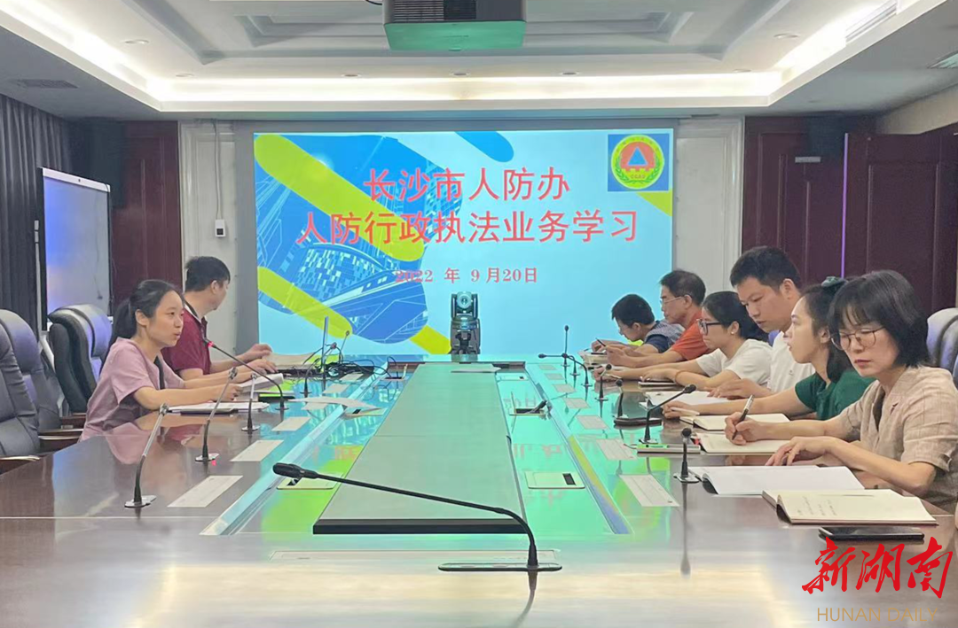 新湖南客户端9月21日讯(通讯员 赵翼鹏 周梦溪)人民防空行政执法是行政执法的组成部分,也是人民防空法治建设的重要内容。9月20日,长沙市人防办组织开展人防行政执法业务学习,长沙市人防办审批处、法规处、维管站及人防工程服务中心相关人员参加。
