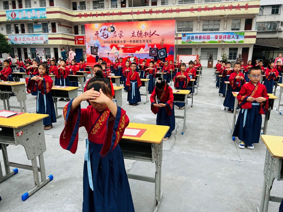 新湖南客户端9月16日讯(通讯员 张雷 李文明)秋风送爽,古韵飘香。9月16日,芷江县城南小学2022年新生开笔礼在学校操场举行,一年级学生、家长、教师600余人参加此次活动。